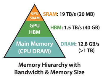 GPU의 대부분 연산은 SRAM의 값에서 이뤄지고 CPU 연산의 DRAM의 역할을 GPU HBM이 한다고 생각할 수 있다. CPU RAM은 GPU입장에서는 다른 I/O작업이 필요하기 때문에 CPU의 SSD와 유사하다고 볼 수 있다.
