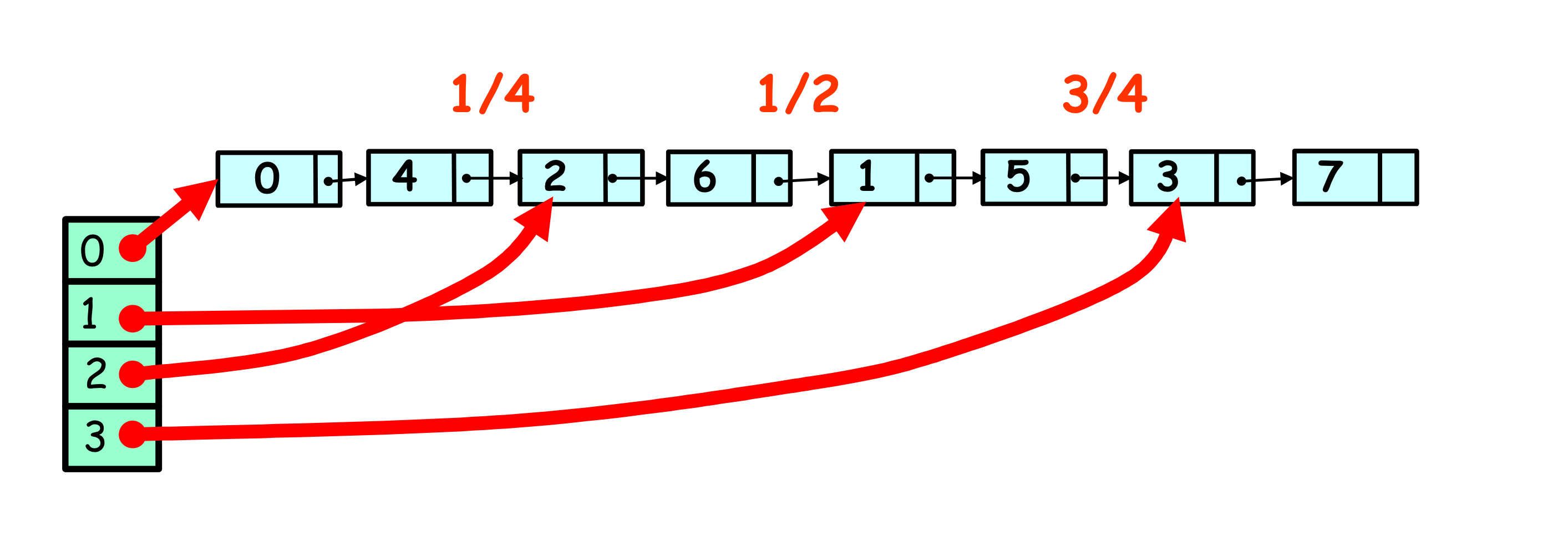 [k mod 4] 로 구하게 된다. 이는 bucket index를 key의 i개의 LSB들로 정하기 때문이다.(여기서 i는 table 크기가 2의 i 제곱이라고 표현될 때 값이다.)