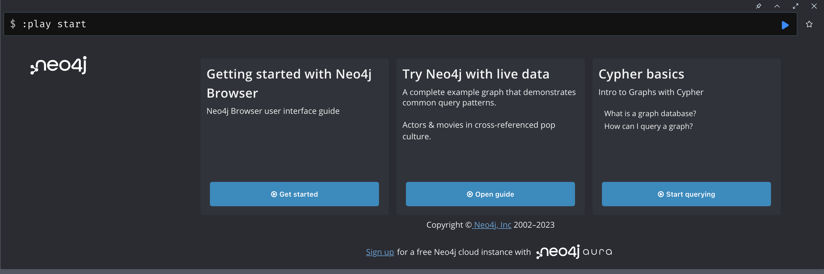 성공적으로 docker가 실행되고 http://localhost:7474로 접속하게 되면 다음과 같은 화면을 볼 수 있다.