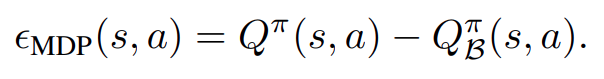 우리는 Extrapolation Error를 다음과 같이 표현 할 수 있는데요. 우항에 오른쪽 값이 우리가 찾고자 하는 Target값이고 오른쪽이 batch에서 데이터를 뽑았을 때 그걸로 학습한 Q값이라고 보면 우리는 당연히 원래 우리가 측정하고자 하는 Q와 실제 학습 해보니 얻을 수 있는 Q값에 대한 차이로 Extrapolation을 정의 할 수 있습니다.