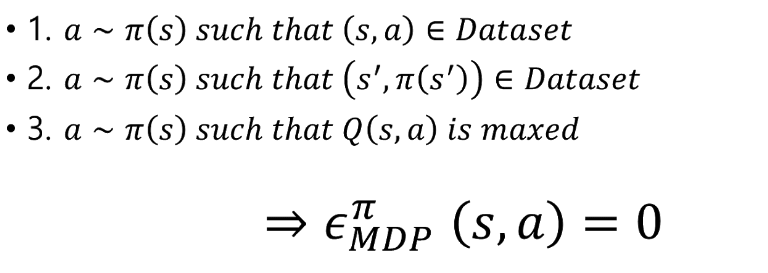 여기서 힌트를 바로 얻을 것입니다. 만약 우리가 버퍼에서 있는 (s, a, s')을 뽑으면 해당 쌍에 대한 상태천이 함수는 모두 버퍼에서 샘플링 된 것이기 때문에 같게 될 것입니다. 따라서 우리가 만약 buffer에 있는 Trajectory와 MDP를 따라가게 한다면 우리는 전체 Extrapolation Error에 대해 0으로 가져갈 수 있을 것입니다.