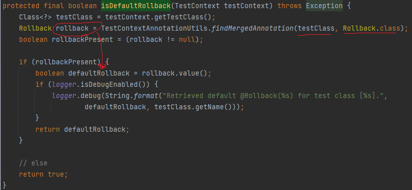 testClass에 대해서 Rollback 어노테이션과 자동적으로 결합해주는 부분이 존재한다.