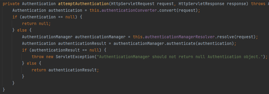 일단 첫번째로 request를 authentication 객체로 바꿔주는 authenticationConverter를 이용해 request를 authenication 객체로 전환해준다.