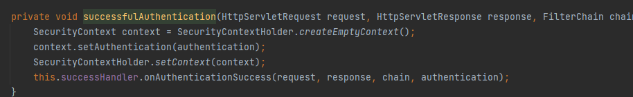 이렇게 받은 authenticaiton을 authenticationProvider가 authenticationfilter에 반환해준다. 이후 이 결과를 받은 AuthenticationFilter는 이를 다음과 같이